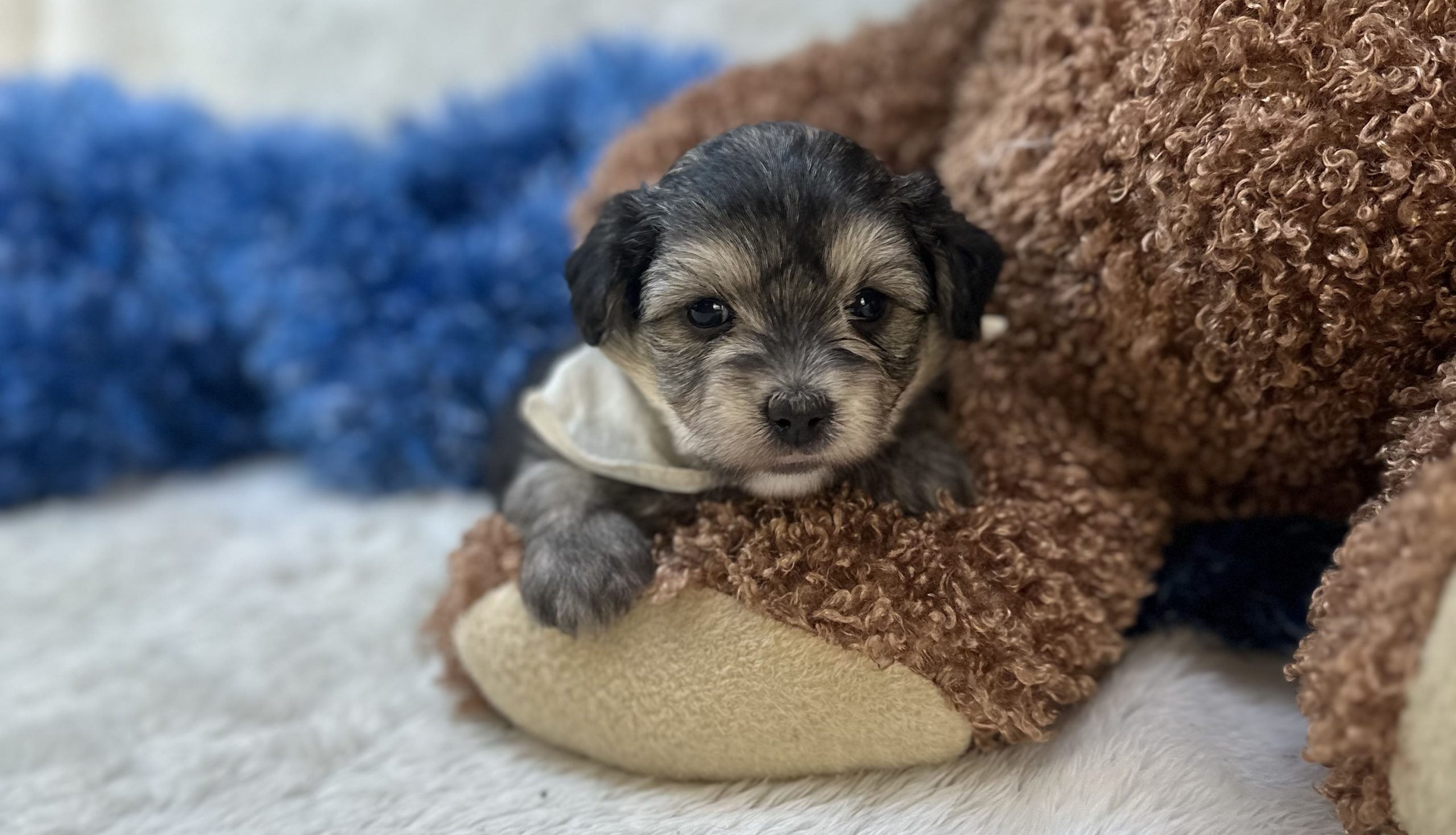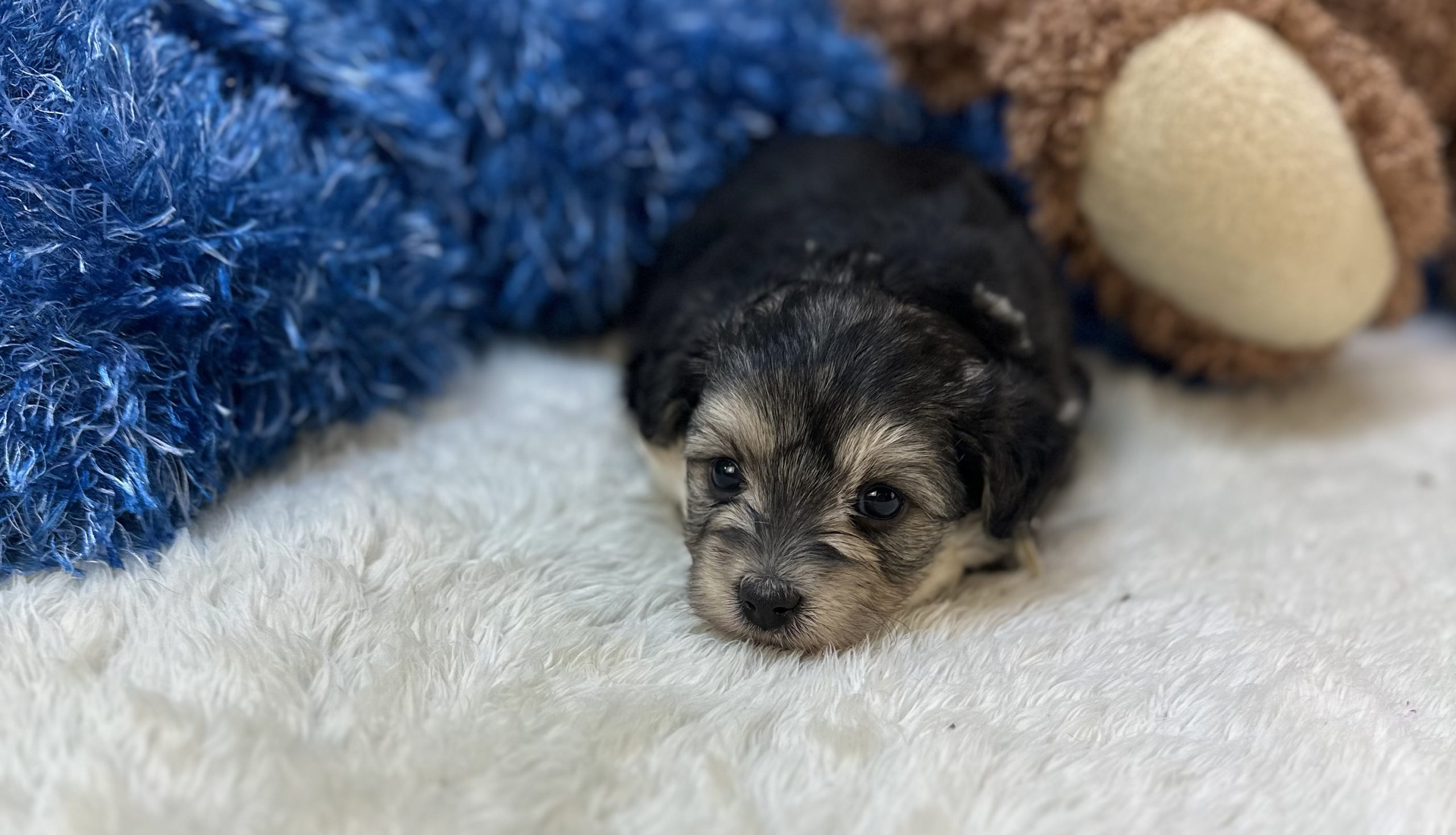 Hendrix is such a fantastic puppy. Hendrix is a MorkiPoo boy! He loves to cuddle and sit with you! He is extremely smart and is always ready to learn new tricks! He is a playful boy that loves his toys. Hendrix enjoys being by your side. He is current with all age appropriate vaccines and preventive parasite control. Hendrix is ready to be your companion and best friend. He has been socialized with children and does well with the sights and sounds of home. You are welcome to come pick Hendrix up in Birch Tree, Missouri. If you need ground transportation or a flight scheduled, please call for a quote. For more information email, call, or text Sonya at 417-274-0129.