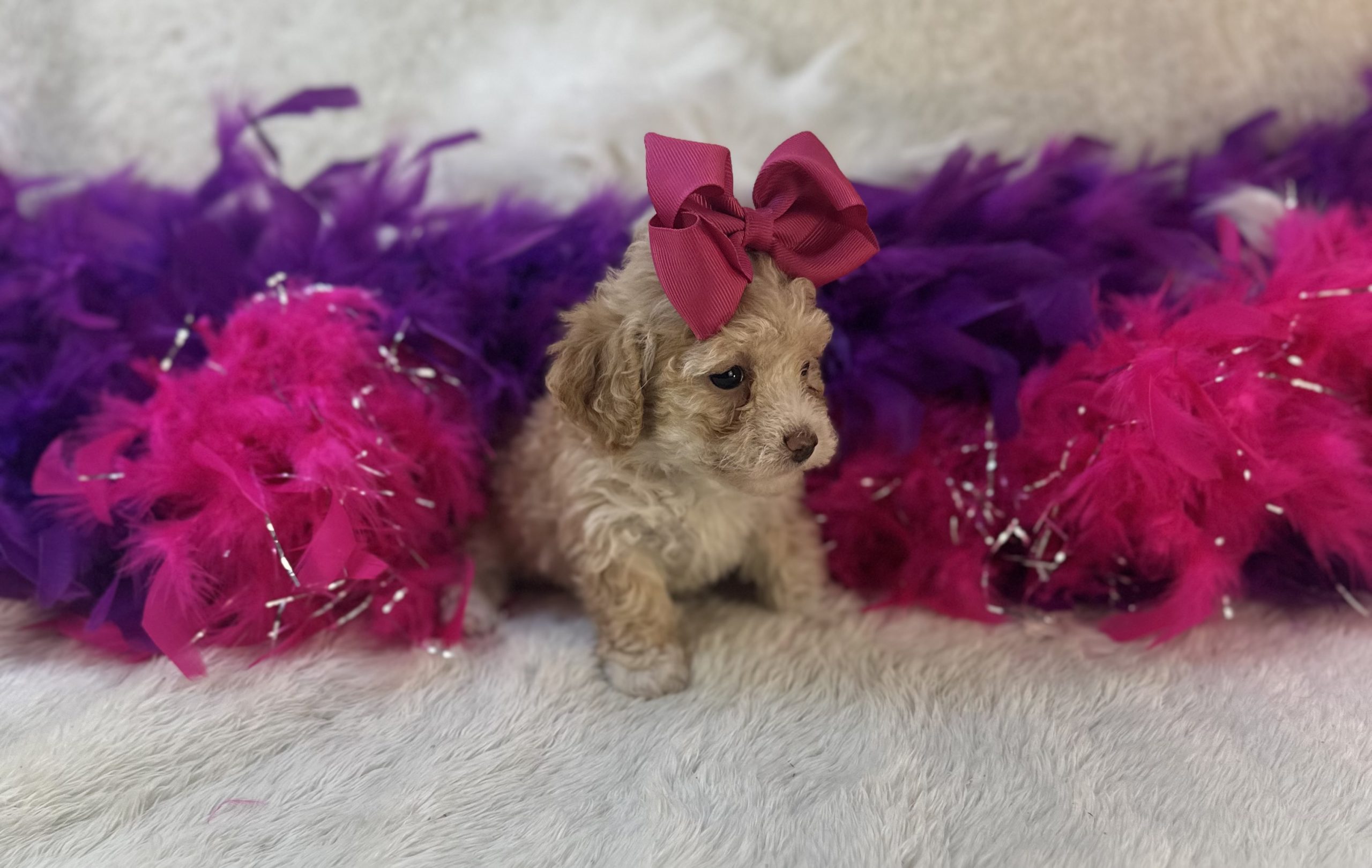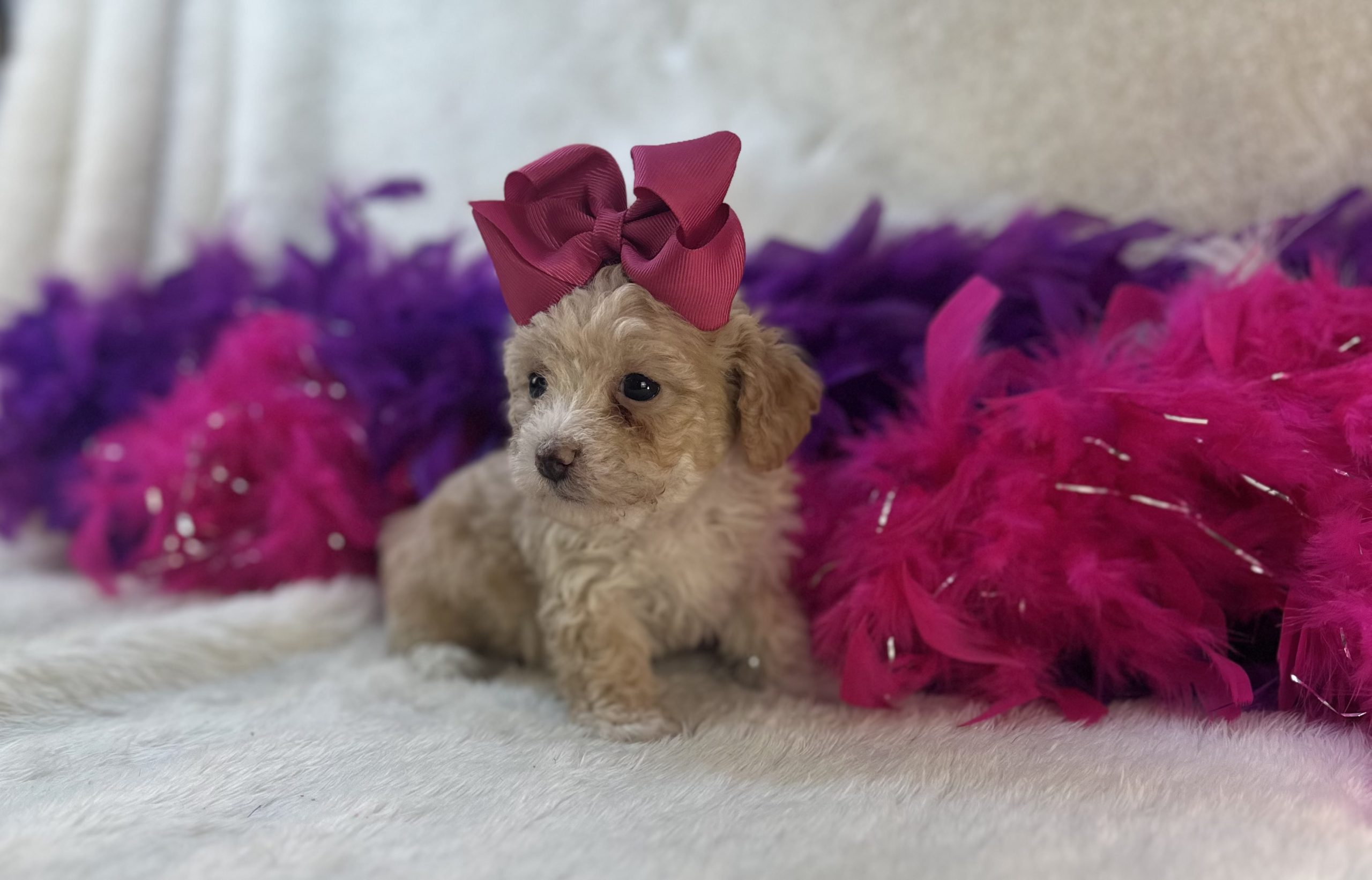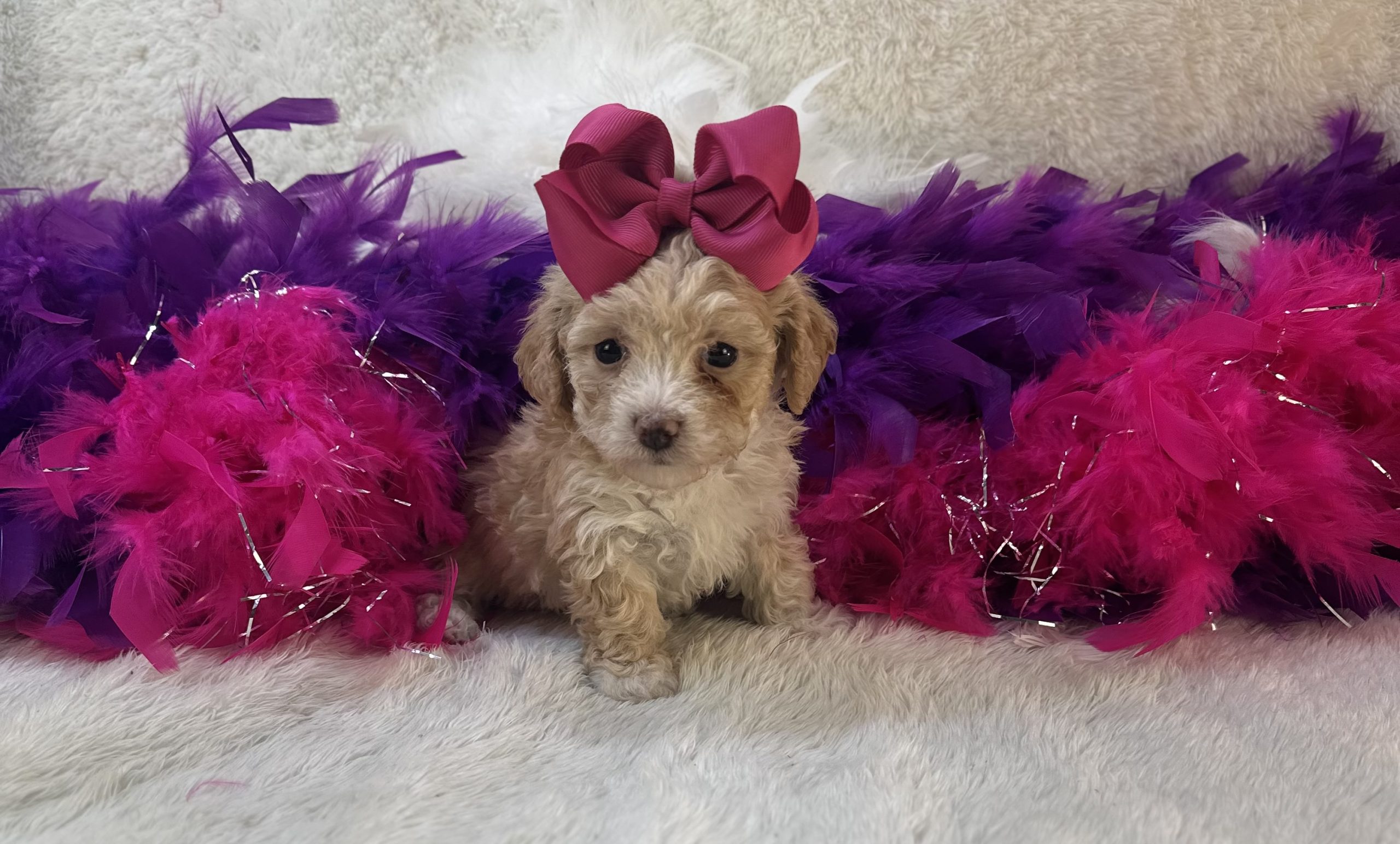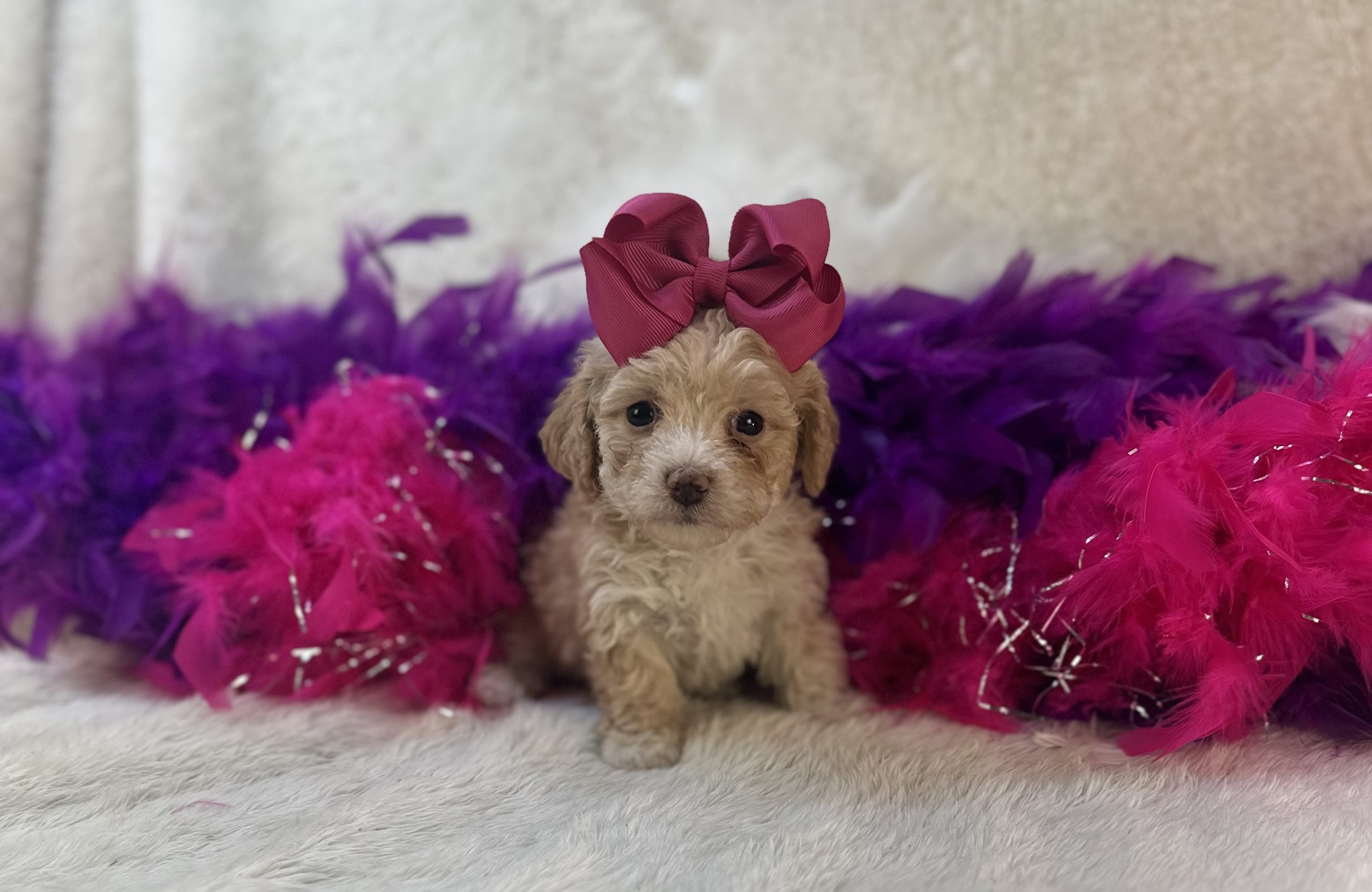 Meadow is a beautiful baby girl. She is simply perfect in every way. Meadow is a beautiful Maltipoo! She has a wonderful personality and is such a sweet little girl. Meadow is a great snuggle friend, she loves to spend time with you, and is a wonderful little companion. She has a beautiful coat of fur. She will love to be on your lap or follow you everywhere you go. Meadow’s parents both have the best personalities. You can pick Meadow up in person at Birch Tree, Missouri. For more information call, text, or email Sonya at 417-274-0129. If you need ground transportation or a flight scheduled, please call for a quote.Puppy Info